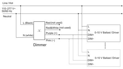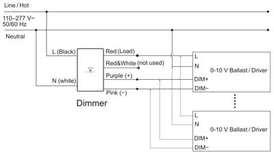 Si le variateur peut démarrer, mais que le ballast/pilote 0-10 V ne démarre pas, veuillez vérifier si le fil chaud et le fil neutre à l'entrée du variateur (ou du ballast/pilote 0-10 V) sont inversés.
