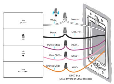 Le DMX interrupteur mural à bouton-poussoir Doté d'un boîtier en plastique blanc, il fonctionne comme un interrupteur domestique standard. Facile à utiliser, il est accessible aux adultes comme aux enfants, sans aucune difficulté d'apprentissage. Son installation est simple et rapide, sans code d'adresse. Une fois installé, la gradation est activée.