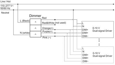 Si le variateur peut démarrer, mais que le ballast/pilote 0-10 V ne démarre pas, veuillez vérifier si le fil chaud et le fil neutre à l'entrée du variateur (ou du ballast/pilote 0-10 V) sont inversés.