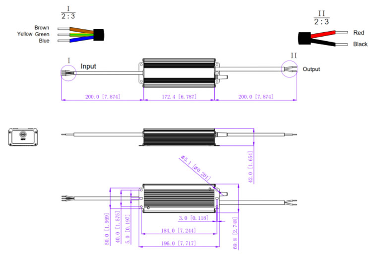 2. Câble de sortie 2*16AWG, câble rouge (+) vers le côté positif (+), câble noir (-) vers le côté négatif (-).