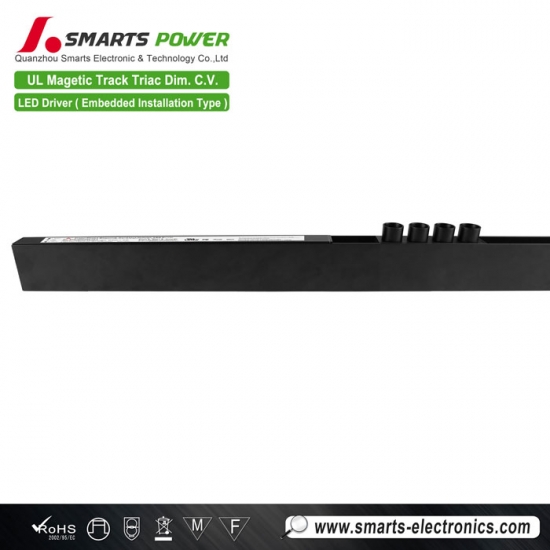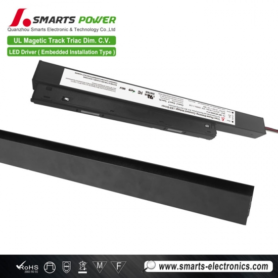 Fabricants d'alimentations pour éclairage LED sur rail magnétique, 120-277 V, à tension constante, avec triac et variateur.