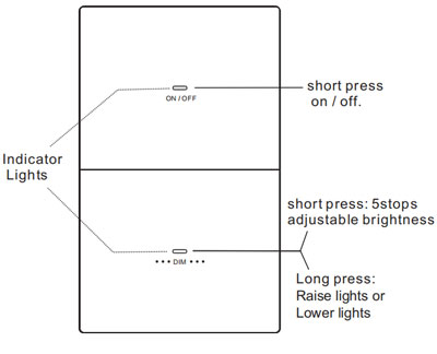 Remarque : Lorsque le bouton de gradation atteint sa luminosité maximale ou minimale (appui long), le voyant lumineux clignote lentement. |