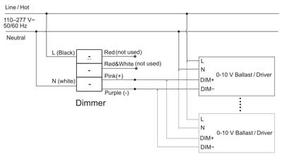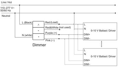 Si le variateur peut démarrer, mais que le ballast/pilote 0-10 V ne démarre pas, veuillez vérifier si le fil chaud et le fil neutre à l'entrée du variateur (ou du ballast/pilote 0-10 V) sont inversés.