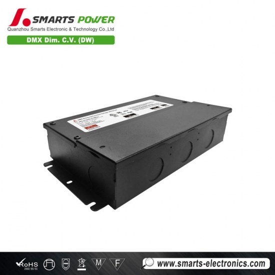 Alimentation LED étanche 347 V AC, 12 V/24 V/48 V, 60 W, DMX, variable, avec boîtier de jonction