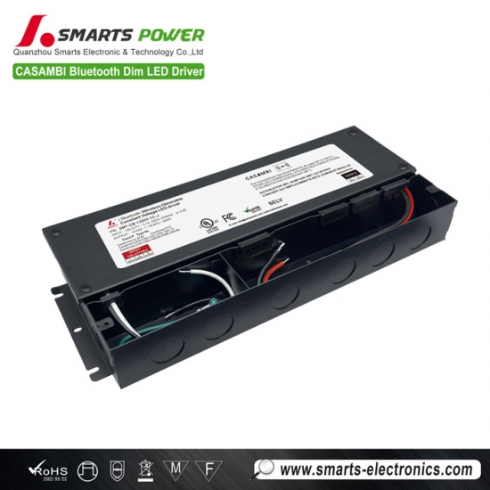 Plage de tension d'entrée universelle 100-277 V CA, Alimentation LED sans fil à intensité variable Bluetooth CASAMBI Doté d'une boîte de jonction intégrée, ce luminaire offre un câblage simple et pratique et propose de 1 à 5 canaux. Il dispose d'un mode de sortie PWM pour une variation d'intensité fluide, stable et sans scintillement.