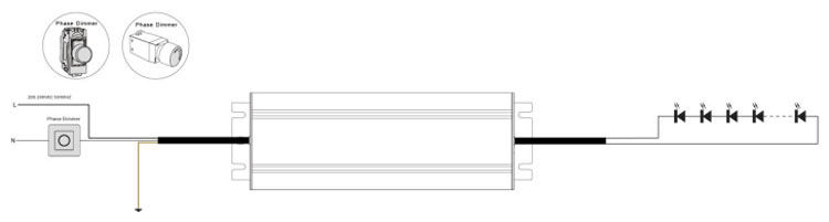 1. La modulation de largeur d'impulsion (PWM) de la tension de sortie peut être ajustée via la borne d'entrée de la ligne de phase CA (L) en connectant un variateur de phase/Triac ou un système d'éclairage.