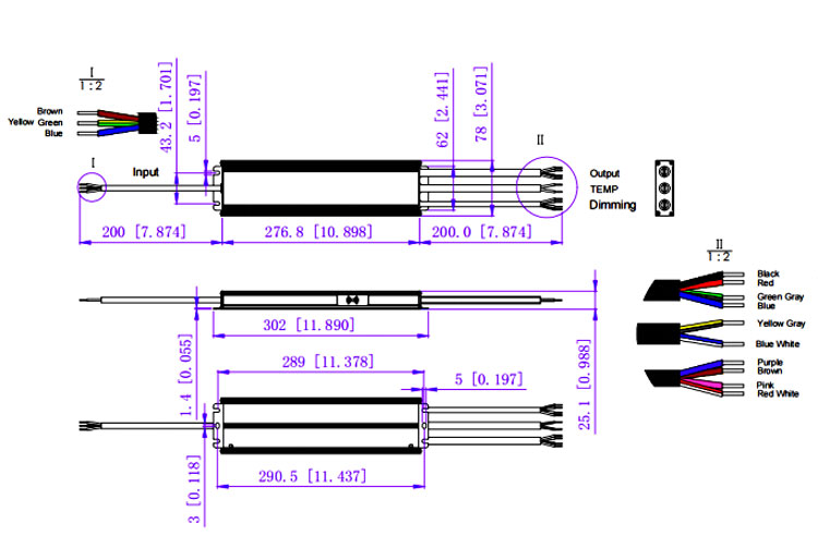 Fil de sortie (12 V) | Noir (V+) Blanc gris (CW-) Jaune (WW-)(3*14AWG\3*2.08mm²) |